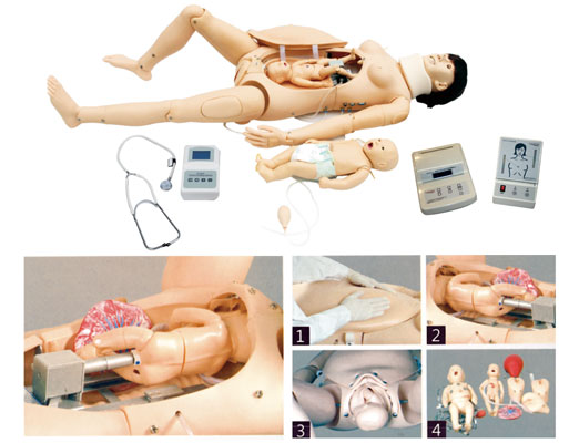 高級分娩與母子急救模型 該綜合教學模型很好的結合了護理模型和產(chǎn)科分娩模型,可進行產(chǎn)前檢查,演示整個分娩過程(包括產(chǎn)前、產(chǎn)時和產(chǎn)后)以及母嬰的護理和急救。
